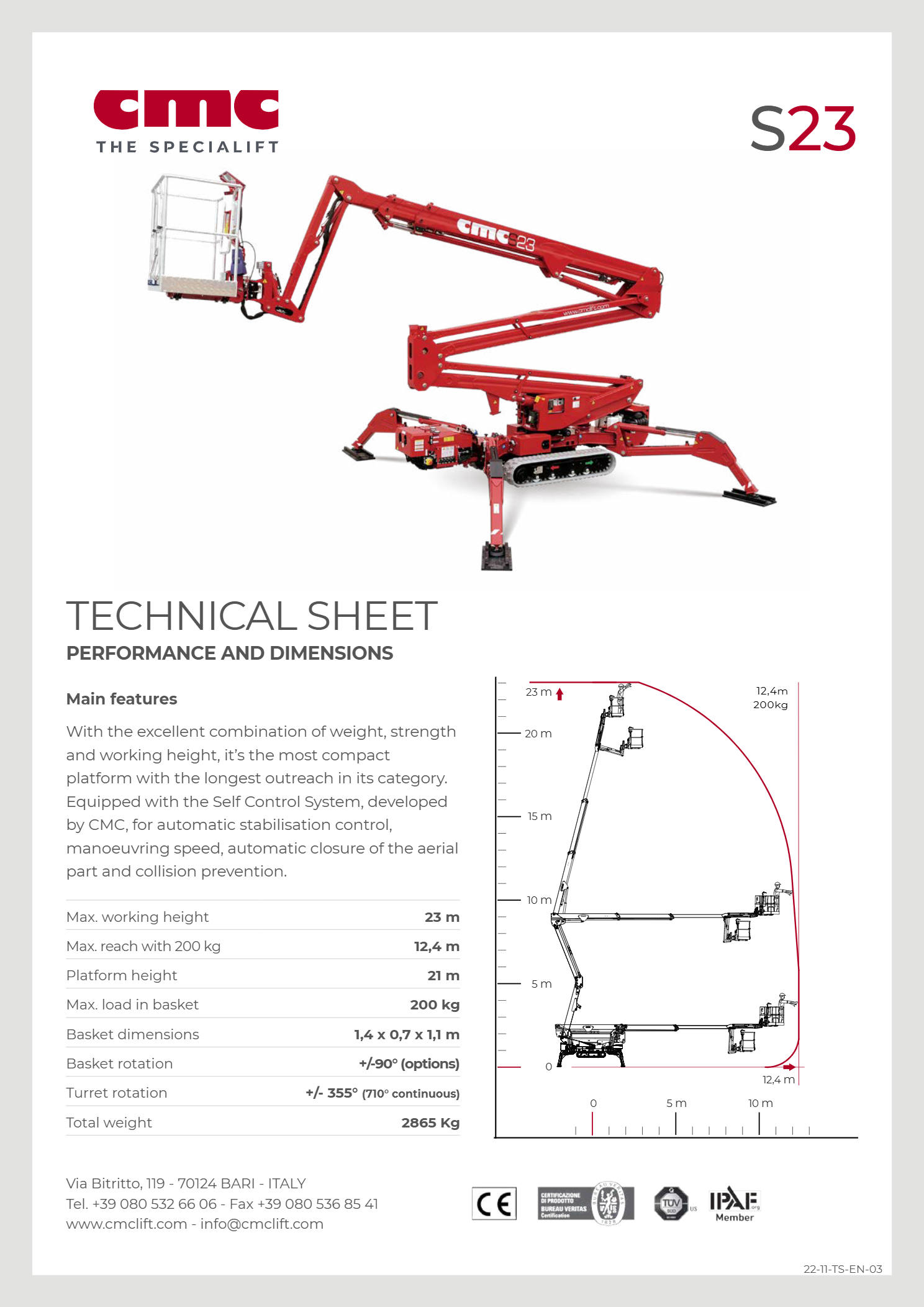 - Up to 23m working height for extended access